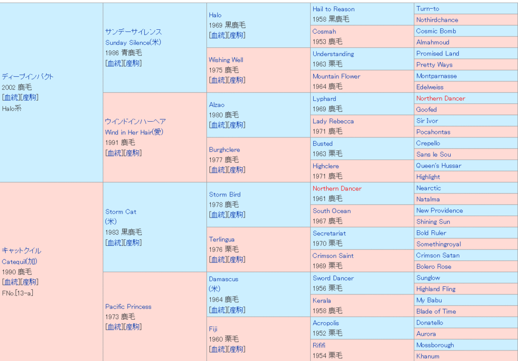 ディープインパクトの父系と合わせてなんと75%がアメリカ由来の血統なのです